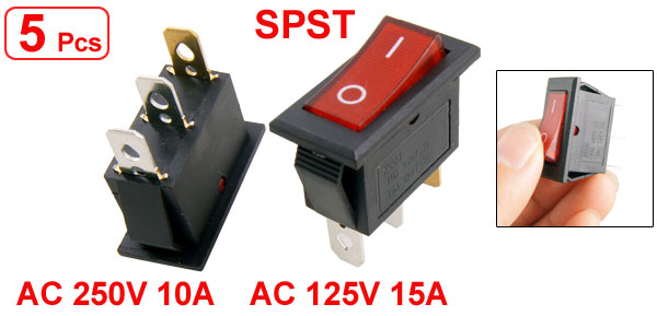 5x Red Light illuminated ON/OFF SPST Snap In Rocker Switch 10A/250V 15A/125V AC
