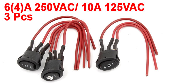 6(4)A 250V/ 10A 125V AC Wired Latching SPDT Car Boat Rocker Switch 3 Pcs Black