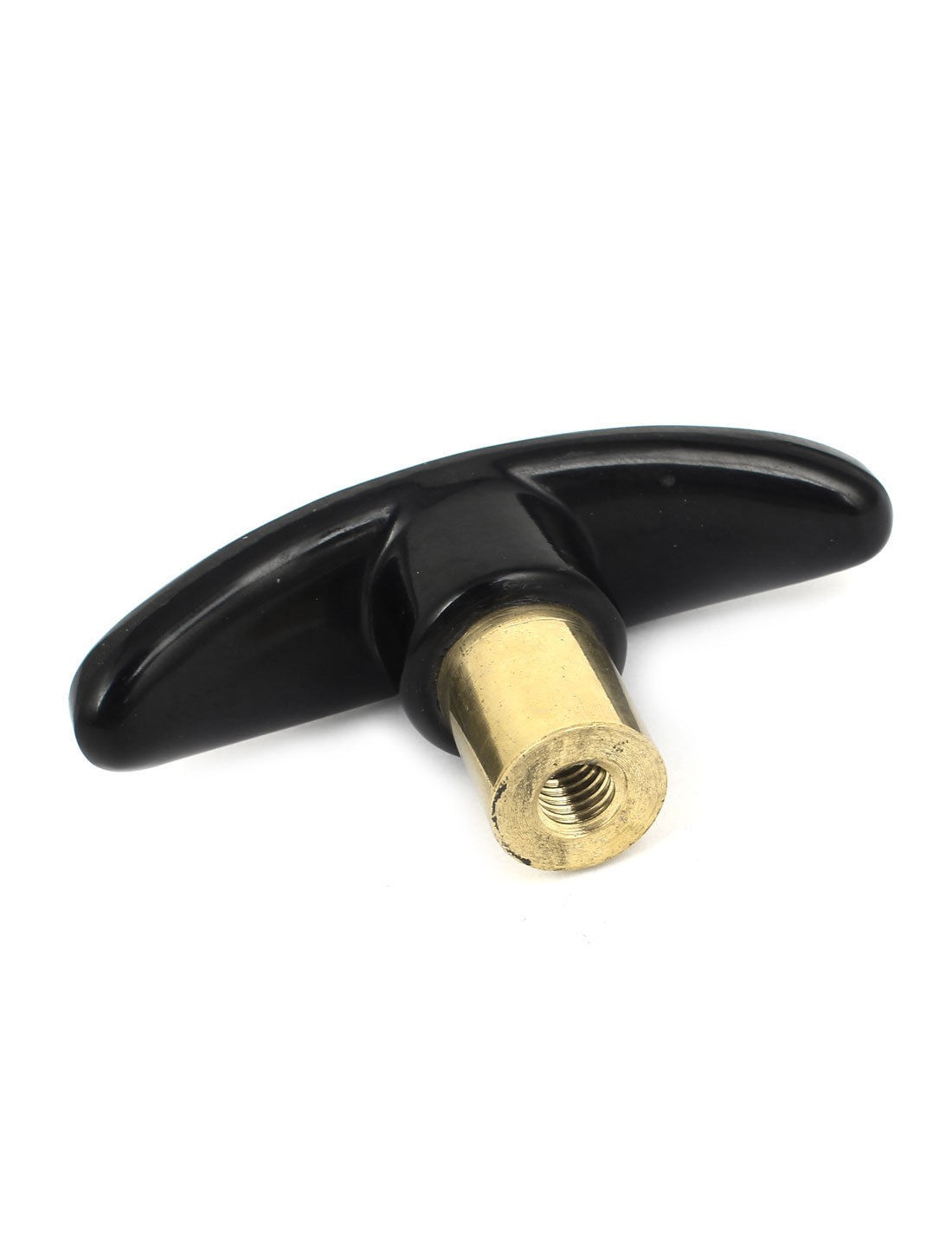 Product Name T Shape Knob Type Screw On Head Size 80x 25mm/ 3.2" x 2"(L*W) Total Height 45mm/ 1.5" Female Thread Diameter 6.5mm/ 1/16PT Material Metal, Plastic Color Black,Gold Tone Weight 60g Package Content 1 x T Shape Knob - Reviews