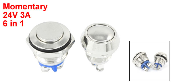 6 in 1 12mm 16mm Thread SPST 1NO Momentary Push Button Switch Silver Tone 24V 3A
