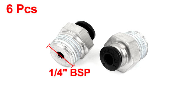 6 Pcs 1/4" BSP Male Thread 10mm Push In Joint Pneumatic Connector Quick Fitting