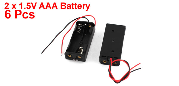 6 Pcs 2 Wired 2 x 1.5V AAA Battery Holder Plastic Case Storage Box Black