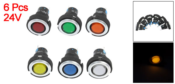 6 Pcs 24V 22mm Thread 6 Colors Signal Indicator Light Pilot Lamp Bulb
