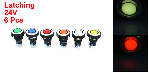 6 Pcs 24V 22mm Thread SPDT Self-Locking 6 Colors Light Push Button Switch
