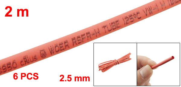 6 Pcs 2m 6.6ft 2.5mm Dia Red Heat Shrink Tubing Tube