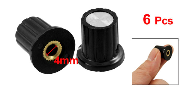 6 Pcs 4mm Hole Dia Knurled Control Knob for Potentiometer