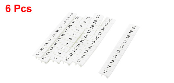 6 PCS 5 x 3.5mm 1-60 Number White Polymide 66 Terminal Marker Strips