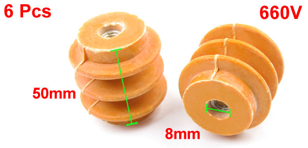 Details6 Pcs 50mm Height 8mm Thread Dia 660V Busbar Enhanced Insulator Supporter  Product Name Busbar Insulator Main Material Dough Molding Compound Unsaturated Resin, Brass Withstanding Voltage 660V Thread Diameter 8mm/ 5/16" Busbar Insulator Size 50 x 45mm/ 2" x 1.8"(H*D) Main Color Orange Total Weight 606g Package Content 6 x Busbar Insulator