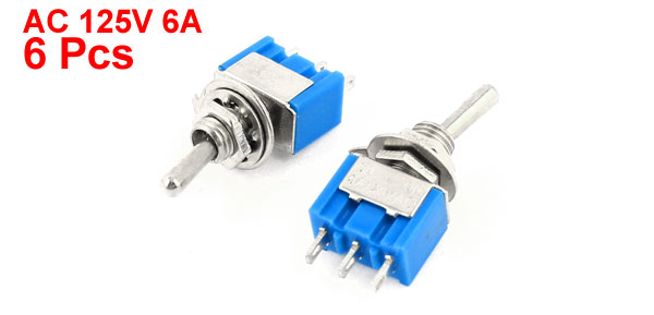 Main Color Blue, Silver Tone Brand DMiotech Country of Manufacture CHINA Type SPDT Material Plastic, Metal Product Name Toggle Switch Total Size(Approx.) 1.3 x 0.8 x 3.2cm / 0.5" x 0.3" x 1.3"(L*W*H) Net Weight 29g Package Content 6 x Toggle Switch Rating AC 125V 6A Screw Diameter 6mm/0.24" Position 2 Position(On/Off) Pin Number 3 Pins - Reviews