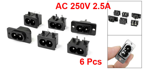 6 Pcs AC 250V 2.5A 2 Pins IEC320 C8 Inlet Plug Power Socket Black