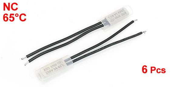 Product Name Temperature Switch Model.No KSD9700 Material Bimetal ,Plastic,Stainless Steel Contact NC(Normally Closed) Rated Power 250V 5A Active Temperature 65°C Lead Wire Length 7cm / 2.8" Head Dimension 20 x 8 x 3mm/0.78" x 0.31" x 0.12"(L*W*T) Net Weight 22g Package Content 6 x Temperature Switch - Reviews