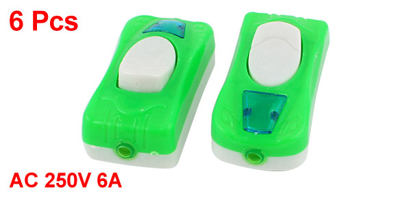Main Color Green, White Product Name In Line Cord Switch Brand DMiotech Net Weight 113g Country of Manufacture CHINA Package Content 6 x In Line Cord Switch Voltage AC 250V 6A Material Plastic Total Size 6.5 x 3 x 2cm/2.6" x 1.2" x 0.8"(L*W*H) Hole Diameter 4.5mm/0.18" - Reviews