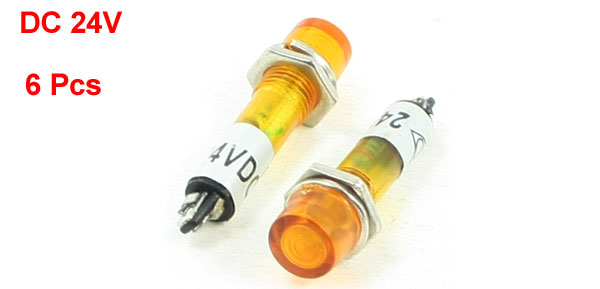 Details6 Pcs DC 24V 7mm Yellow Power Illuminated Signal Indicator Light Pilot Lamp  Product Name Indicator Pilot Light Voltage DC 24V Pin Number 2 Material Plastic, Electric Components Light Color Yellow Thread Diameter 7mm / 0.28" Pin Distance(Approx.) 1.5mm / 0.06" Size 11 x 38mm / 0.43" x 1.5"(D*H) Net Weight 11g PakcageContent 6 Pcs x Indicator Pilot Light