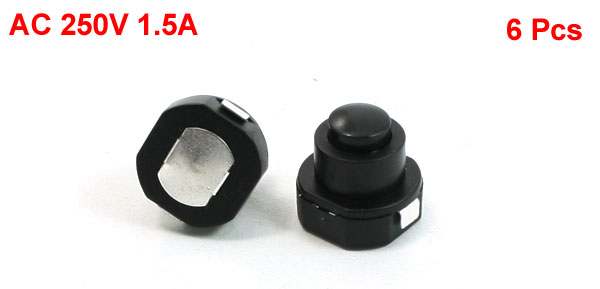 6 PCS Flashlight Torch Self-Locking Round Pushbutton Switch Black 250VAC 1.5A