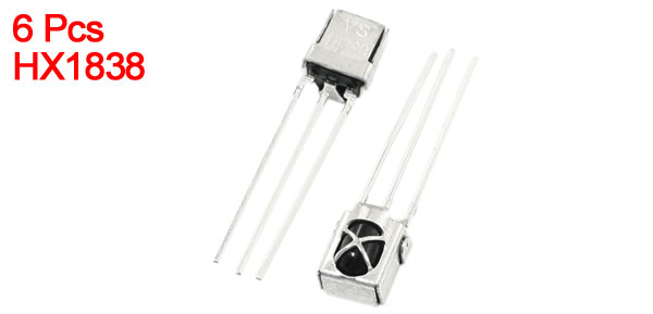 Product Name Infrared IR Receiver Model HX1838 Power Supply 5.5V Power Dissipation 35mW Reception Distance 17m Pins 3 Pin Size 21 x 2mm/0.83" x 0.08"(L*Pitch) Body Dimension 7 x 6 x 4mm/0.28" x 0.24" x 0.16"(L*W*T) Material Plastic, Electric Components Color Black, Silver Tone Net Weight 4g PakcageContent 6Pcs x Infrared IR Receiver - Reviews