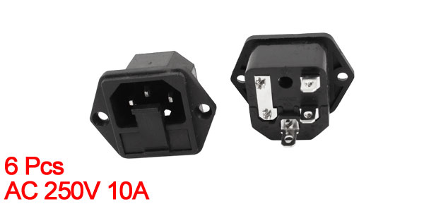 6 Pcs IEC320 C14 3 Pin Inlet Male Power Plug Socket AC 250V 10A w Fuse Holder