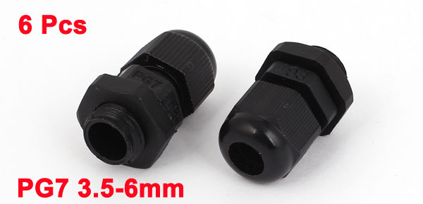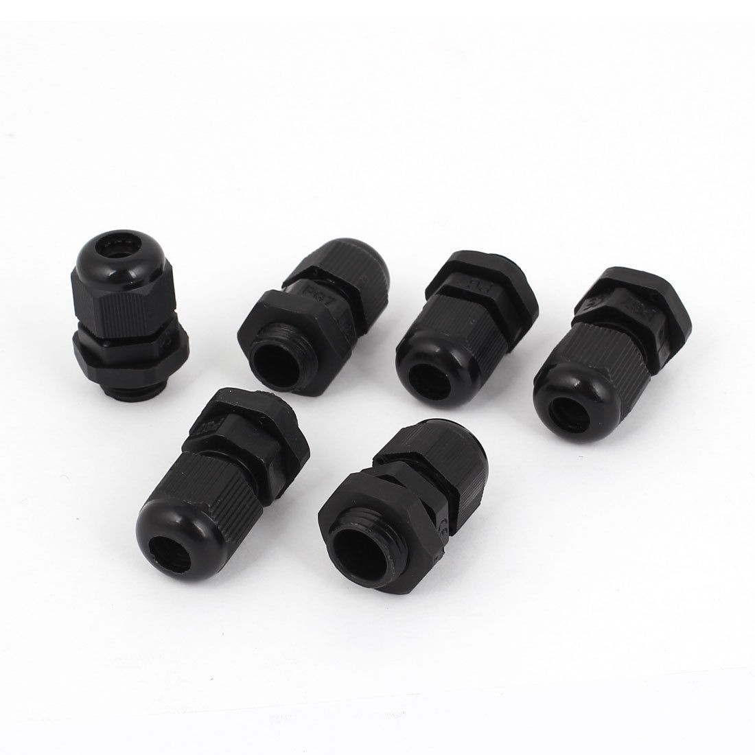 6 Pcs Plastic Waterproof Adjustable PG7 3.5-6mm Cable Glands Locknut Black M12