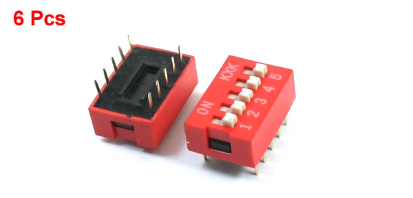 6 Pcs Red Double Row 10 Pin 5 Positions 2.54mm Pitch DIP Switches