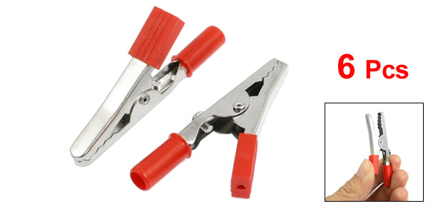 6 Pcs Red Plastic Coated Insulated Crocodile Alligator Clips 2.2"