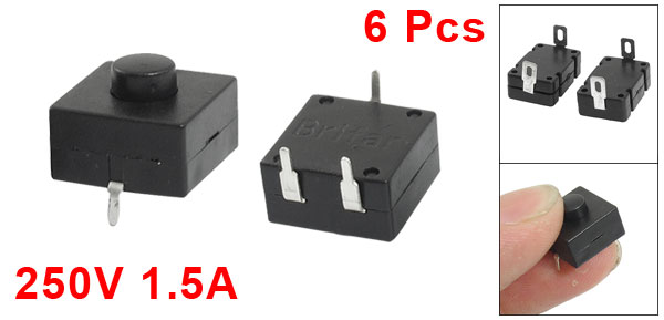 6 Pcs Vertical Pins Square Push Button Switch Black for Electric Torch
