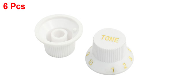 Details6 Pcs White Insulated Guitar CD Volume Tone Control Volume Knobs  Product Name Volume Knobs Material Plastic Color White Adjustable Range 0-10dB Fit for Shaft Hole Dia. 5.5mm/ 0.22" Knob Inner Dia 15mm/ 0.6" Overall Size 25 x 18 x 13mm/ 1" x 0.71" x 0.51"(Buttom Dia*Top Dia*H) Weight 12g Package Included 6 Pcs x Volume Knobs