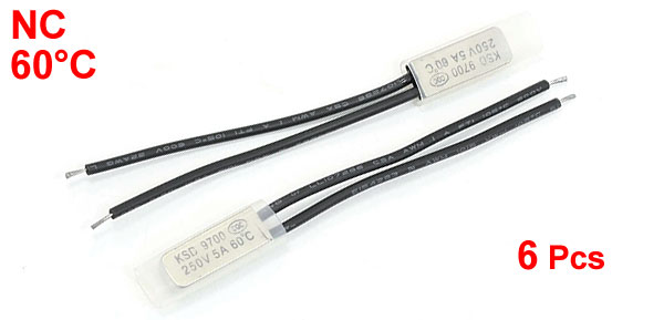 Product Name Temperature Switch Model.No KSD9700 Material Bimetal ,Plastic,Stainless Steel Contact NC(Normally Closed) Rated Power 250V 5A Active Temperature 60°C Lead Wire Length 7cm / 2.8" Head Dimension 20 x 8 x 3mm/0.78" x 0.31" x 0.12"(L*W*T) Net Weight 23g Package Content 6 x Temperature Switch - Reviews