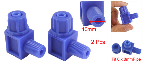 Product Name Quick Coupler Material Plastic Thread Diameter 10mm/0.39'' Fit for Pipe Size 6 x 8mm/0.24'' x 0.31'' (ID * OD) Total Size (Each ) 31 x 30 x 15mm/1.2'' x 1.2'' x 0.6'' (L*W*T) Color Blue Weight 17g Package Content 2 x Quick Coupler - Reviews
