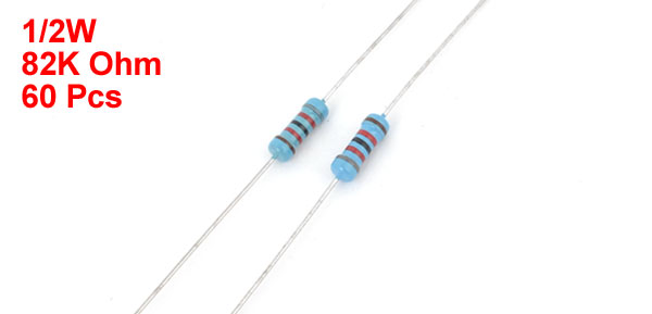 Product Name Metal Film Resistors Power Rating 1/2W Resistance 82K Ohm Tolerance ±1% Total Length(Approx.) 6cm /2.4" Body Size 3 x 8.5mm / 0.12" x 0.33" (D*L) Main Color Blue Weight 17g Package Content 60 Pcs(±2%) x Metal Film Resistors - Reviews