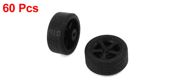 60 Pcs 16mm Dia Rubber Roll Plastic Spoke Car Auto Model Wheels Black