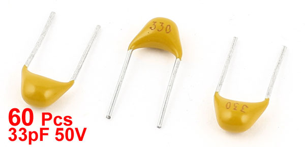 60 Pcs 2 Pin Terminal Multilayer Ceramic Capacitor Yellow 33pF 50V 5%