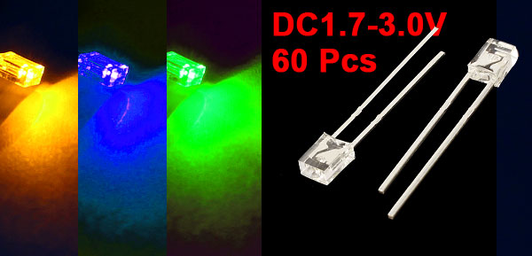 60 Pcs 4mmx3mmx2mm Head Yellow Blue Green LED Light Emitting Diodes DC 1.7-3.0V
