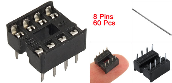 Product Name DIP IC Socket Pitch 2.54mm / 0.100" Row to Row Distance(Approx) 7.5mm / 0.295" Number of Pins 8 Each Size(Approx) 10 x 10 x 8mm / 0.39" x 0.39" x 0.31" (L*W*H) Material Plastic, Metal Color Black, Silver Tone Net Weight 42g Package Content 60 Pcs(±2%) of DIP IC Sockets - Reviews