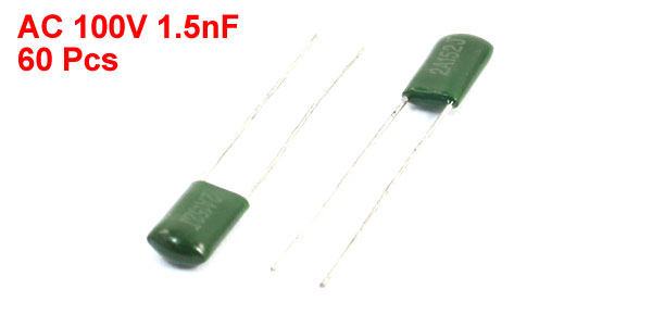 60 Pcs AC100V 1.5nF 3.5mm Lead Spacing Mylar Polyester Film Capacitor