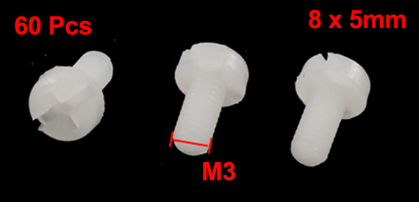 Product Name Threaded Spacer Type Phillips Screwdriver Thread Size M3 Thread Length 6mm / 0.24" Total Size 8 x 5mm / 0.31" x 0.2" (H*D) Material Nylon Color White Net Weight 5g Package Content 60 Pcs (±2%) x Threaded Spacer - Reviews