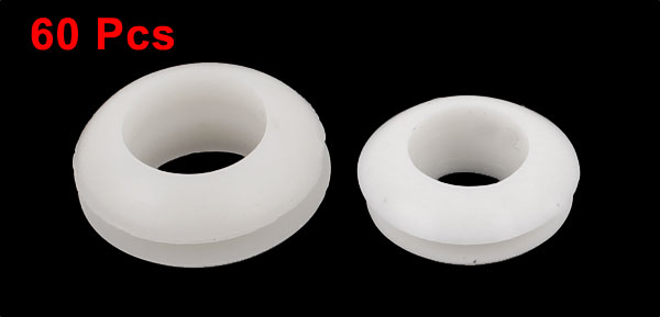 60 Pcs White Rubber 8mm 10mm Open Hole Ring Dual Side Cable Wiring Grommet