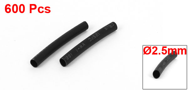 600 Pcs 2.5mm Polyolefin 2:1 Heat Shrink Tubing Tube Cable Sleeve Wrap Wire