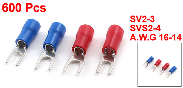 600 x SV2-3 SVS2-4 27A Red Blue Insulated Fork Terminal Connector AWG16-14