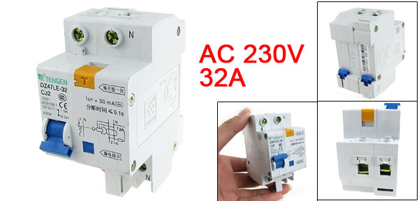 Product Name Earth Leakage Circuit Breaker Model No. DZ47LE-32 C32 Material Plastic, Electric Components Rated Voltage AC 230V Rated Current 32A Breaking Capacity 6000A Rated Residual Operating Current 0.03A (30mA) Rated Residual Operating Time < 0.1S Total Size (Approx.) 93 x 45 x 65mm/ 3.7" x 1.8" x 2.6" (L*W*H) Number of Poles 1 Mount Type DIN Rail Color As Picture Shown Weight 208g Package Content 1 x Earth Leakage Circuit Breaker - Reviews
