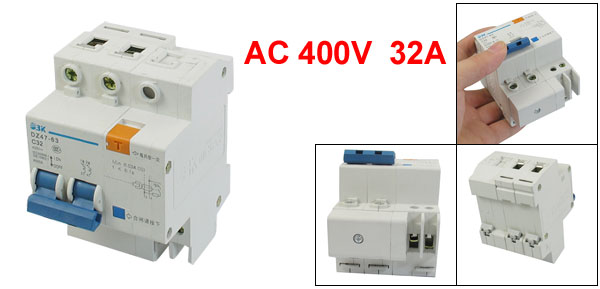 Product Name Earth Leakage Circuit Breaker Model DZ47-63 C32 Number of Poles 2P+N Rated Voltage AC 400V Rated Circuit Breaking Capacity 6000A Rated Current 32A Mounting Type DIN Rail Total Size (Approx.) 9.4 x 6.2 x 7.1cm/ 3.7" x 2.4" x 2.8" (L*W*H) Material Plastic, Electric Components Color As Picture Shown Weight 270g Package Content 1 x Earth Leakage Circuit Breaker - Reviews