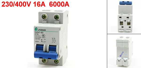 Product Name Circuit Breaker Model DZ47-63 C16 Rated Voltage 230/400V Rated Current 16A Rated Circuit Breaking Capacity 6000A Frequency 50Hz Mounting Type 35mm DIN Rail Mount Total Size (Approx.) 7.8 x 7.5 x 3.5cm/3.1" x 3" x 1.4"(L * W * H) Number of Poles 2 Material Plastic, Electric Components Color Gray, Blue Weight 151g Package Content 1 x Circuit Breaker - Reviews