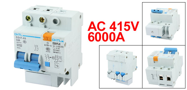 Product Name Earth Leakage Circuit Breaker Model DZ47-63 C25 Rated Voltage AC 415V Rated Circuit Breaking Capacity 6000A Mounting Type 35mm DIN Rail Mount Total Size (Approx.) 9.5 x 6.5 x 6.2cm / 3.7" x 2.6" x 2.4"(L * W * H) Number of Poles 2 Material Plastic, Electric Components Color Light Gray Weight 294g Package Content 1 x Earth Leakage Circuit Breaker - Reviews
