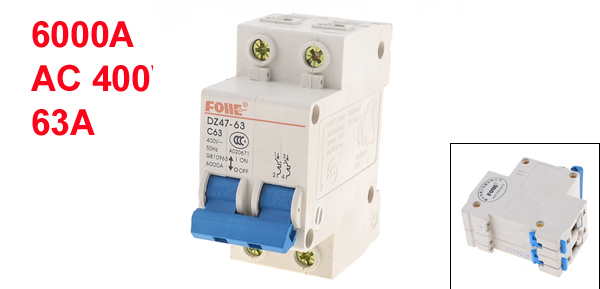 Product Name Moulded Case Circuit Breaker Model Number DZ47-63 C63 Rated Circuit Breaking Capacity 6000A Rated Voltage AC 400V Rated Current 63A Frequency 50Hz Poles 2 Pole Overall Size (Approx) 78 x 75 x 35mm/ 3.1" x 3" x 1.4" (L*W*H ) Material Plastic, Electric Components Color As Picture Shown Weight 186g Package Content 1 x Moulded Case Circuit Breaker