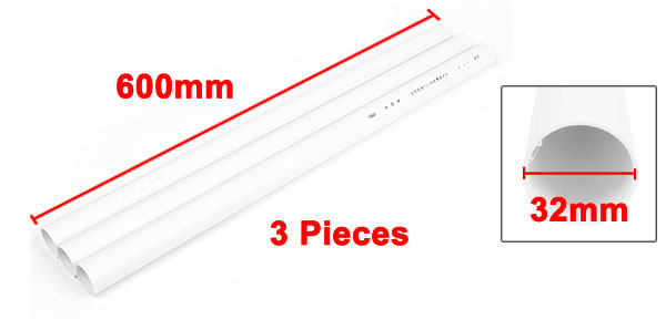 Product Name PVC Conduit Pipe Color White Total Size 600 x 32 x 30mm/ 23.6" x 1.2" x 1.1"(L*Outer Dia*Inner Dia) Material Plastic Weight 362g Package 3 Pcs x PVC Conduit Pipes - Reviews