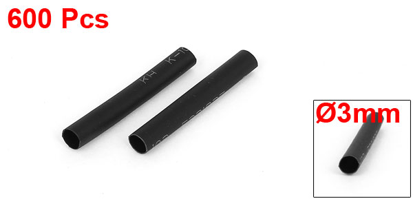 600pcs 3mm Dia Polyolefin 2:1 Heat Shrink Tubing Shrinkable Tube Wrap Wire 30mm