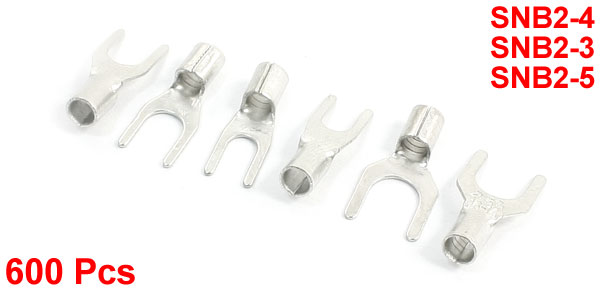 600PCS AWG16-14 SNB2-3 SNB2-4 SNB2-5 Non Insulated Fork Terminals