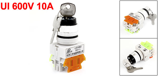 600V 10A DPST Dual Selector Position Locking Rotary Switch w Key