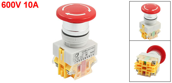600V 10A NO NC Emergency Stop Latching Red Mushroom Push Button Switch