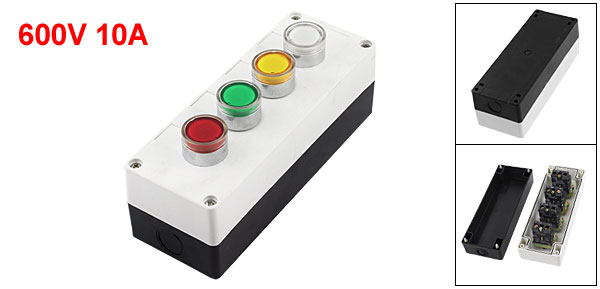 Main Color White, Black Product Name Pushbutton Switch Brand DMiotech Net Weight 483g Country of Manufacture CHINA Lamp Voltage 400V Package Content 1 x Indicator Light Station Light Color Red, Green, Yellow, White Material Plastic, Metal Ith 10A Ui 600V Total Size 195 x 70 x 80mm / 7.7" x 2.7" x 3.1" (L * W*H) - Reviews