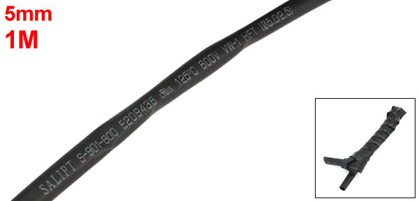600V 125C Black Insulated Heat Shrink Tube Pipe 5mm 1m Length