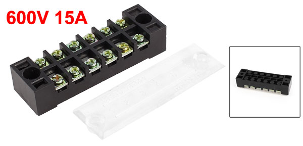 Product Name Terminal Barrier Material Metal, Plastic Type TB1506 Rated Value 600V, 15A Positions 6 Size 7.3 x 2.2 x 1.8cm / 2.8" x 0.9" x 0.7" (L*W*H) Color Black, Clear Weight 28g Package Content 1 x 6 Position Terminal Barrier - Reviews